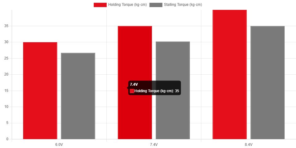 | Couple de maintien @ 7,4 V | 35,0 kg·cm |