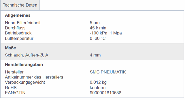 Filtre de conduite SMC de 4 mm pour applications d'air comprimé et de vide